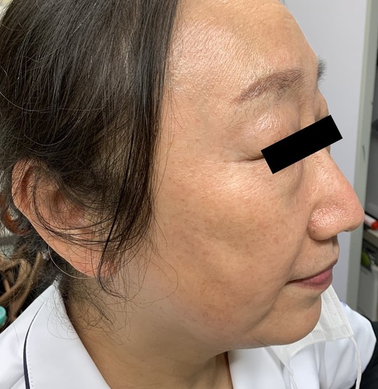 ※ 術後に炎症性色素沈着が残っている状態のお写真です。ここから3か月後には、薄い色素沈着も消失しています。